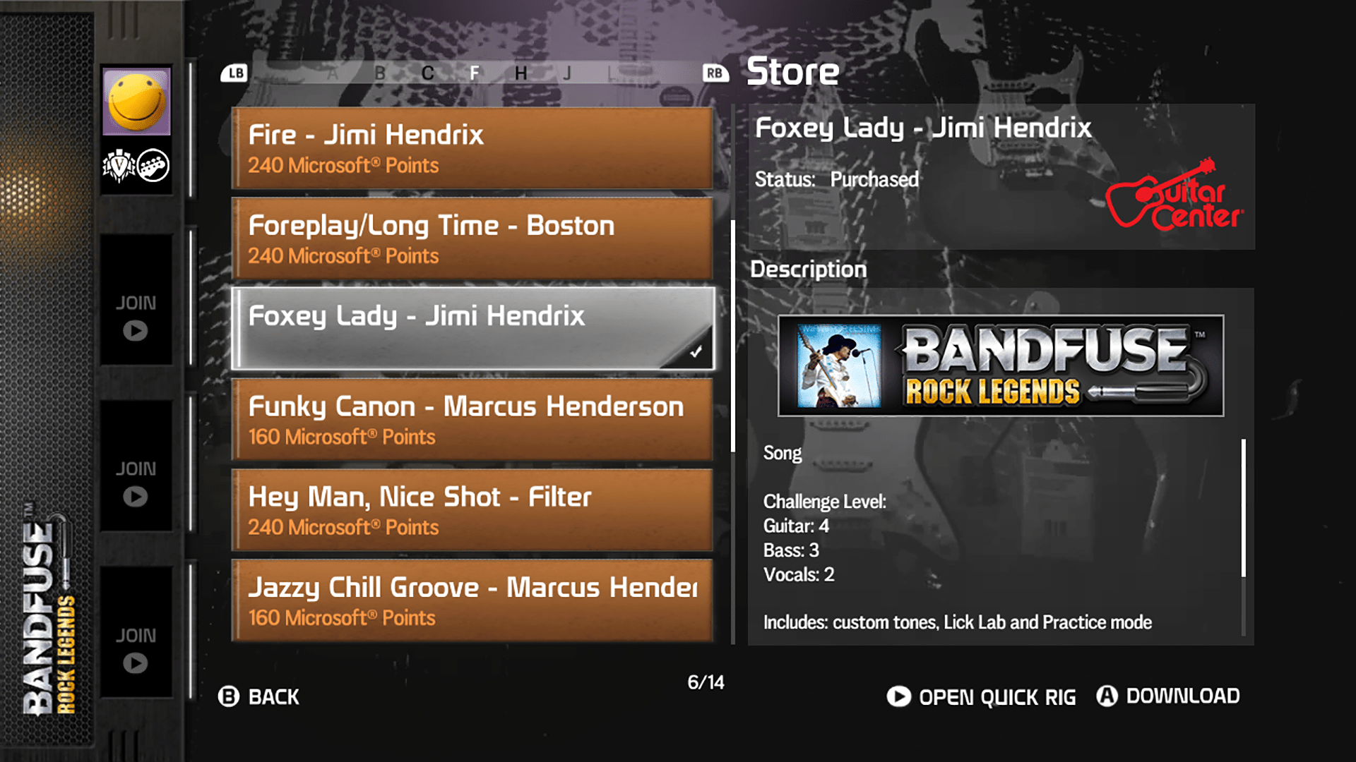 Only on BandFuse: Rock Legends will aspiring musicians receive the unique opportunity to learn to play like Jimi Hendrix. Players who redeem the free DLC code will be able to play “Foxey Lady (Live from the Miami Pop Festival)” on guitar, bass, and vocals, in single-player or as a band. Players have the choice of five difficulty levels including the full lead and rhythm transcriptions and can view specially selected Jimi Hendrix video footage while playing.